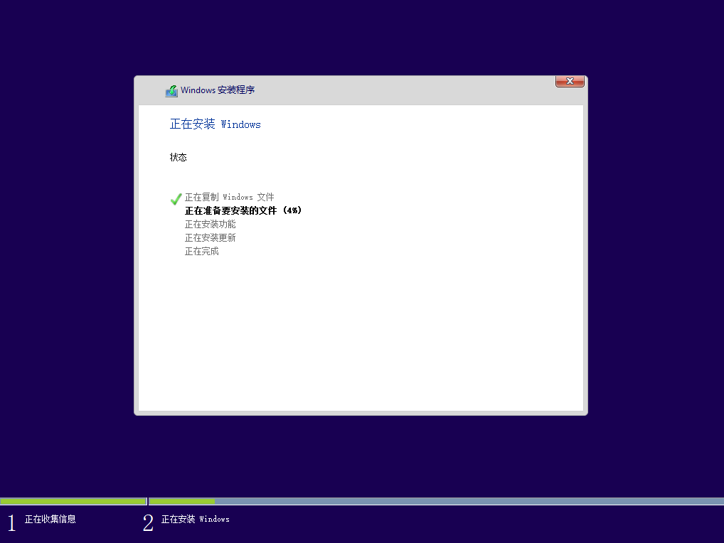 Windows 10 专业版 发布时间:2018-01-10 丨 浏览次数:4800 校内32位下载:点击下载校内64位下载:点击下载安装选项1. 启动安装程序。2. 正在安装。3. 正在准备。4. 进入桌面。