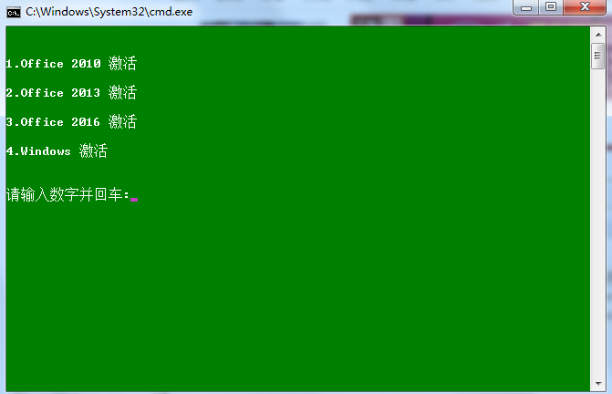 2.按菜单提示,输入想要激活软件的序号后按回车键,如图: